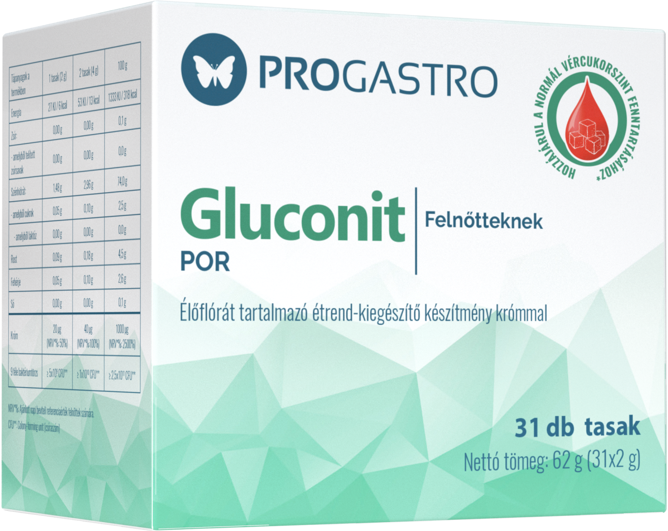 A ProGastro Gluconit - 9 féle, a bélcsatorna mikroflórájában is megtalálható baktériumtörzset tartalmazó étrend-kiegészítő készítmény felnőtteknek.